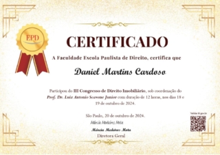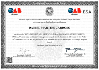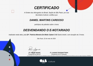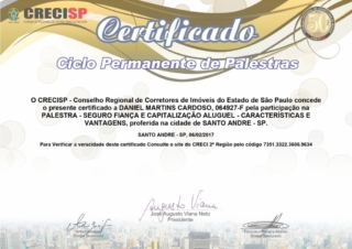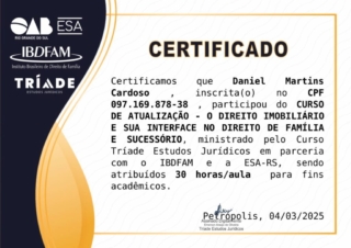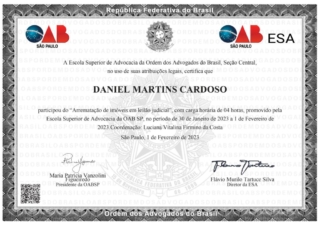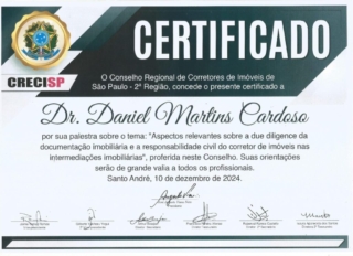 Certificados - Dr. Daniel Martins Cardoso Certificados Advogado Especialista em Direito Imobiliário - Advogado Imobiliário no Grande ABC Contato Se tiver alguma dúvida, entre em contato. E-mail danielmartins@adv.oabsp.org.br WhatsApp (11) 99761-0506 Nome Telefone E-mail Mensagem Enviar